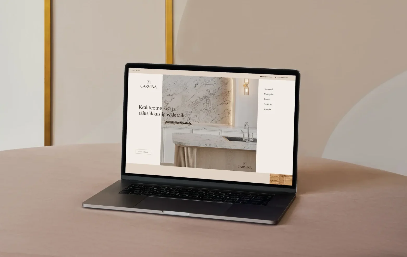 Võtsime aluseks olemasoleva CVI ja äratasime ellu Carvina brändi. Veebileht on täielikult custom-built erinevate funktsioonidega, mis aitavad sisse tuua päringuid, kuvada projekte ja rõhutada visuaalselt brändielemente.